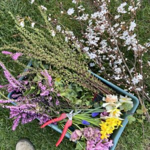 Hier entsteht ein großes lässiges Werkstück aus Trockenblumen und saisonalen Naturmaterialien was zum absoluten Hingucker in ...